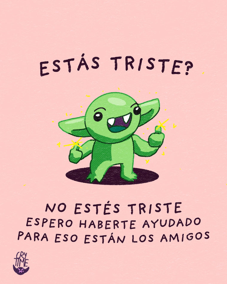 Humor honesto, goblins emocionales y objetos bonitos para días feos. Hacemos arte que no cura, pero acompaña.